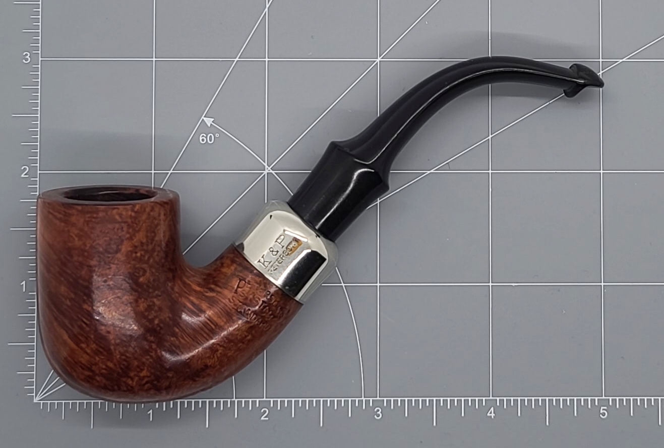 Though quite compact in terms of overall length, this bent Billiard shape maintains the signature muscularity and tubular profile that define their House Style, the bowl being more cylindrical in shape with a stout, angular transition. Its half bend provides a natural clenching posture for a comfortable, . hands-free smoke.
