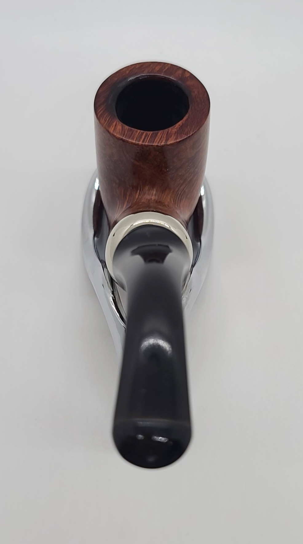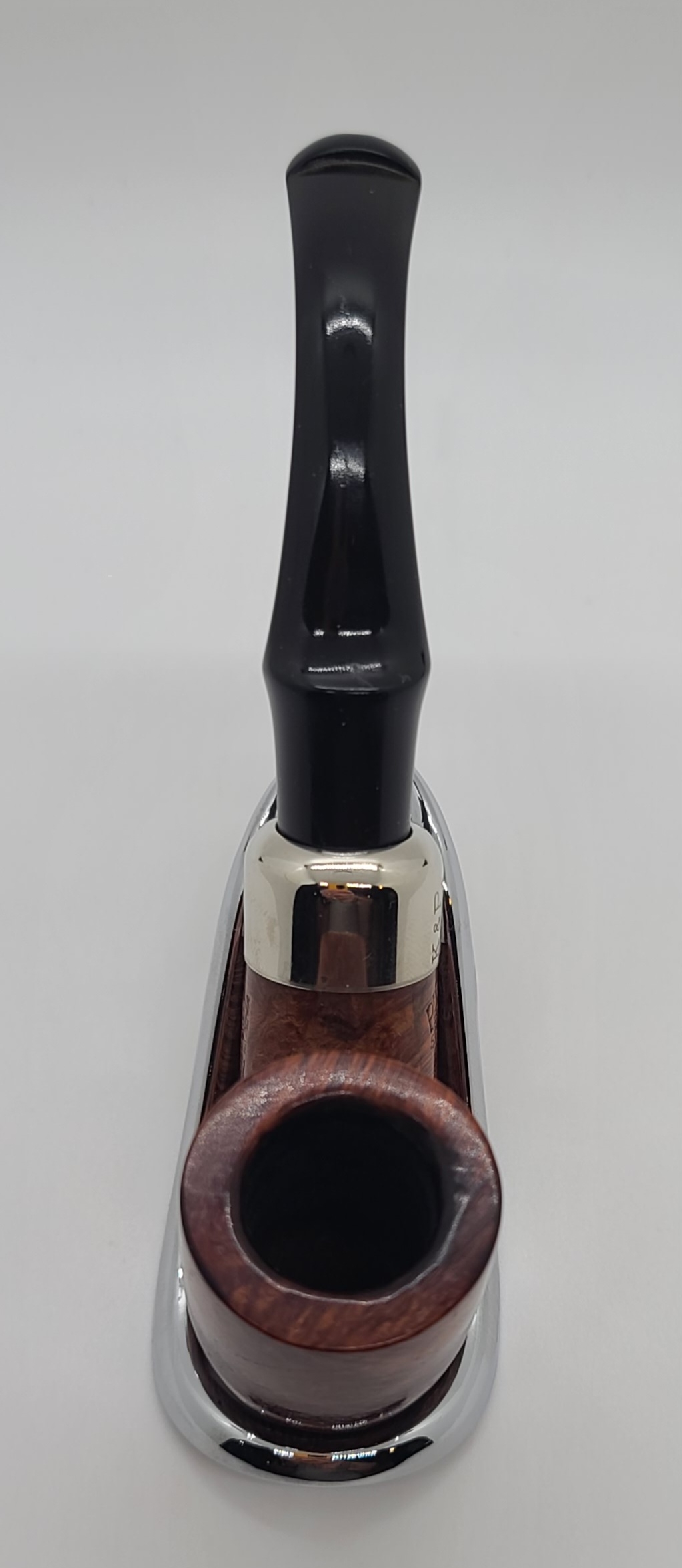 Designed to provide a cooler, drier smoke, the Peterson system pipe features a deep reservoir within the shank to collect excess moisture; a graduated bore mouthpiece that funnels the smoke and allows moisture to collect within the reservoir; a sturdy nickel military mount, which allows the pipe to be broken down and cleaned without damage or warping; and their patented P-Lip bit, which draws the smoke upward, thus reducing tongue bite.